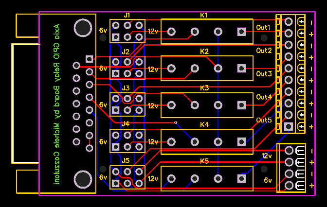 Volevo testare il servizio di prototipazione PCP EasyEDA (https://easyeda.com) quindi ho progettato questa semplice scheda per interfacciare una serie di luci di segnalazione negli studi di messa in onda con un nodo Axia GPIO.