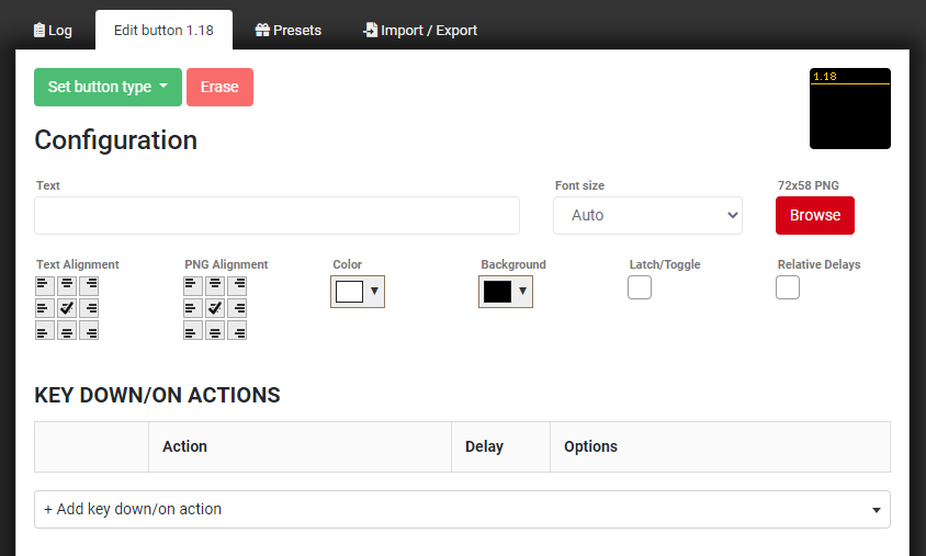 Oltre a nome del bottone, colori, eventuali loghi, occorre impostare le azioni da compiere quando premuto, che possono anche essere più di una realizzando delle macro.