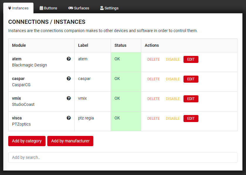 Bitfocus Companion è un software di controllo gratuito compatibile con un’infinità di software ed apparecchiature audio/video: switcher ATEM, mixer Yamaha, Allen&Heath, Behringer, telecamere Panasonic e PTZoptics, vMix, CasparCG e decine di altri, oltre a poter inviare e ricevere generici comandi HTTP, UDP, OSC, MQTT e persino ArtNet!
